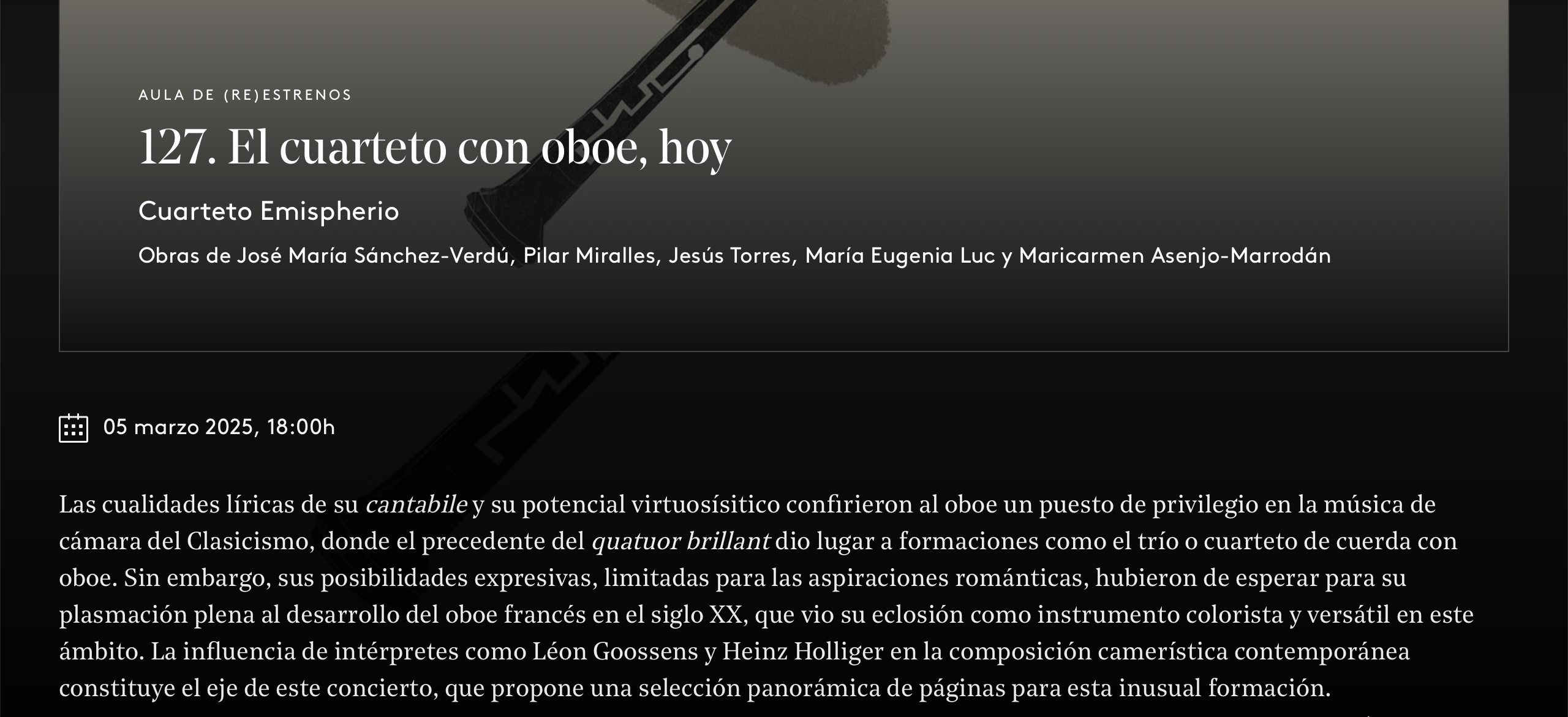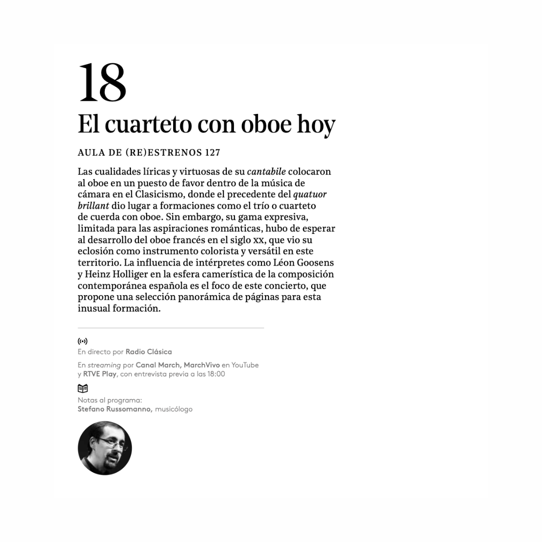 Program notes and links for audio and video recordings click here: https://www.march.es/es/madrid/concierto/127-cuarteto-con-oboe-hoy