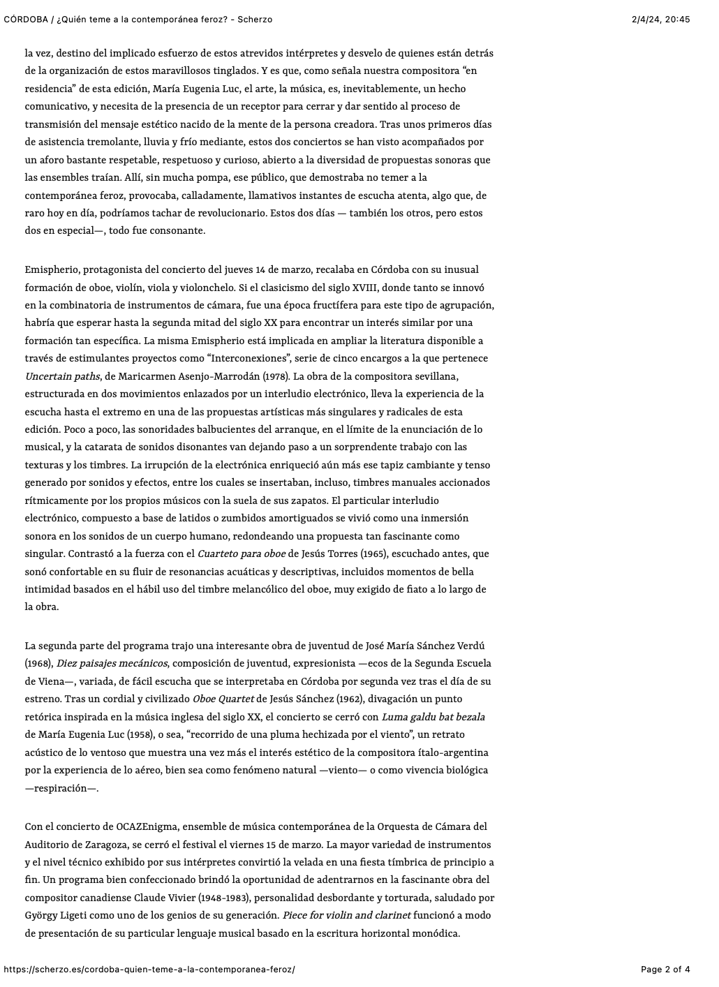 XXVI Festival de Música Contemporánea de Córdoba, March 14, 2024: